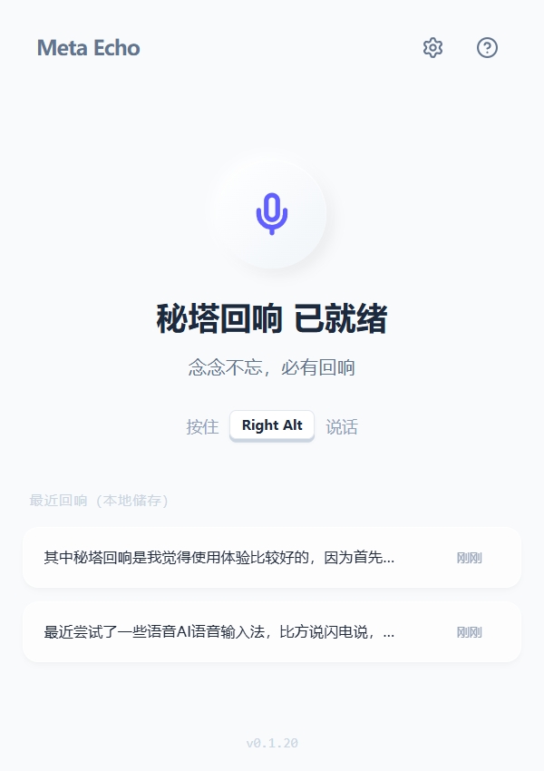 最近尝试了一些语音AI输入法,比如闪电说、Typeless,还有秘塔回响。其中秘塔回响是我觉得使用体验比较好的,因为它是免费的,无需配置任何复杂的东西,性能也很不错,够用。