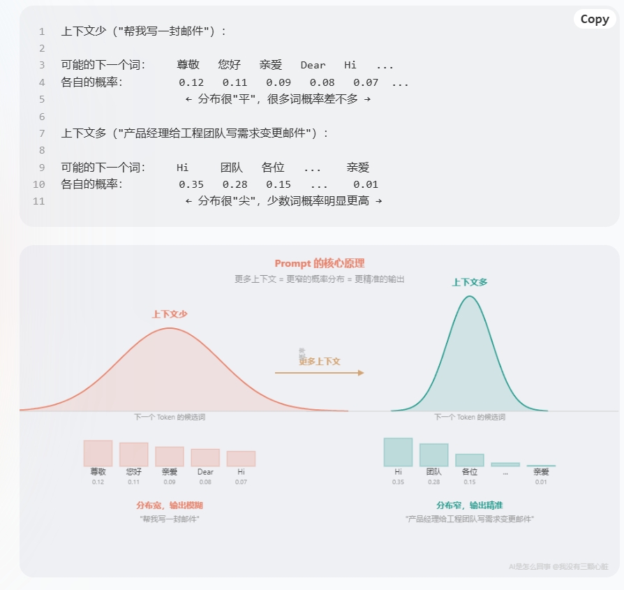 非常通俗易懂的ai科普,里面有一个描述让我印象很深:AI 其实是一个超级匹配器,你只有提供优质的上下文越多,它的输出范围才会变窄,结果才会更精确。